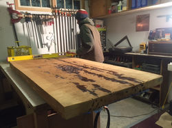 We recieved a beautiful, soft western cedar slab, milled over 30 years ago in Oregon State. We plan preserving its raw beauty.